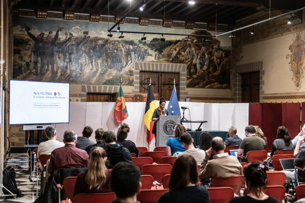 Le mercredi 12 novembre 2025, une cinquantaine de personnes ont rejoint l’équipe du projet ArchiSols dans la magnifique salle de la Milice de l’hôtel de ville de Bruxelles, pour une journée d’étude centrée sur les archives communales et leur valorisation dans une optique environnementale.
